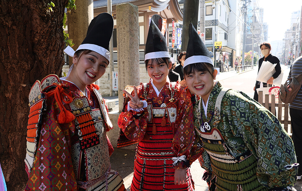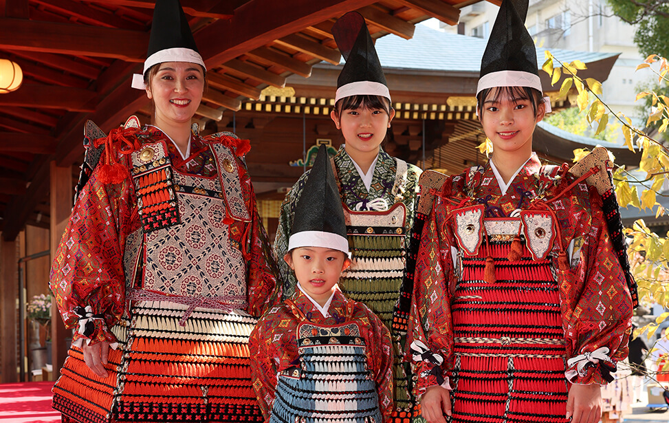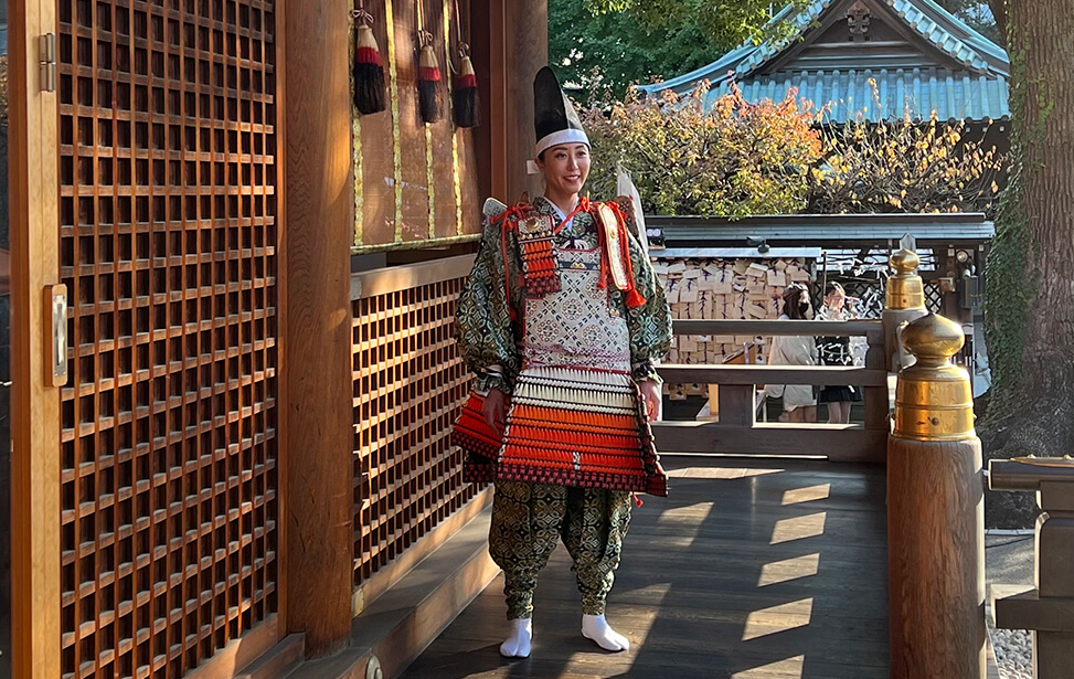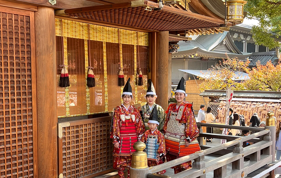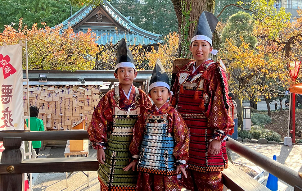 学問の神様として有名な湯島天神では、スポーツや勝負の神でもある 天之手力雄命(あめのたぢからをのみこと)と菅原道真公が祀られており 開運、合格、必勝祈願や厄除を願う大鎧祈願が行われています。
